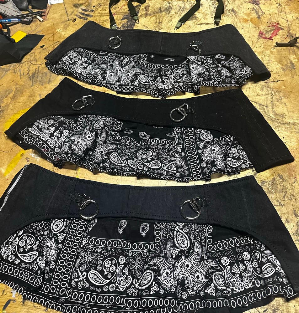 The original Slammer is Back. Made from recycled denim and bandana parts . Each piece is hand aged and dyed for effect. Each price will have unique aging and dying features. Includes heavy duty light weight chain.